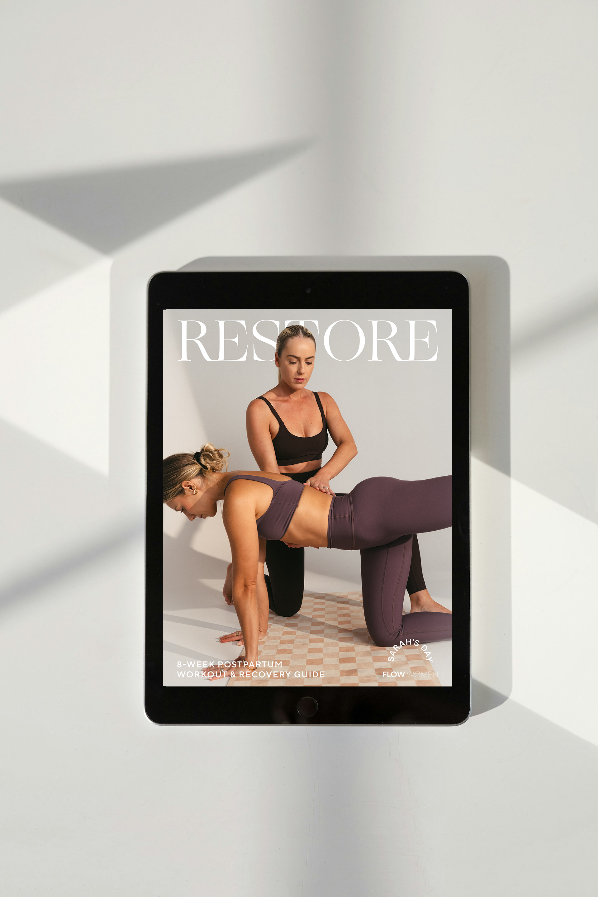 Restore is a postpartum workout and recovery guide written and used by Sarah and Charlotte to bridge the gap between having a baby and returning to the gym or your previous exercise routine.